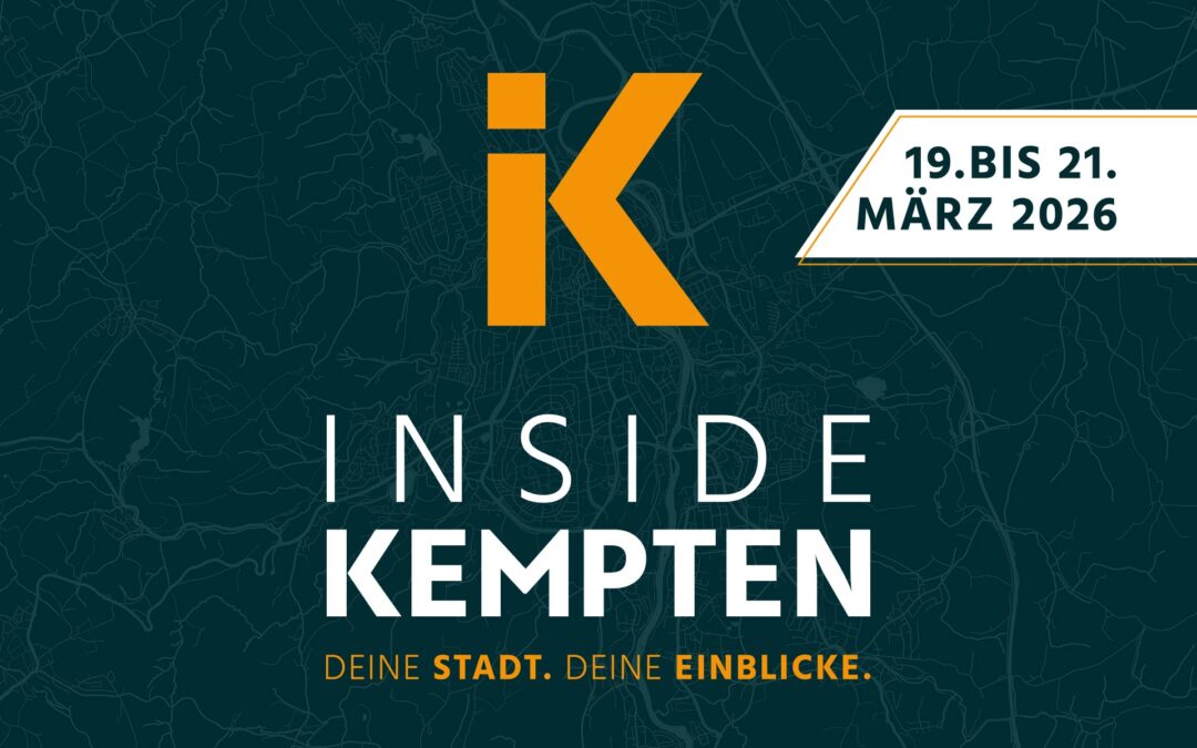 Mit dem neuen Veranstaltungsformat „Inside Kempten – Deine Stadt. Deine Einblicke.“ lädt die Stadtmarketing Kempten GmbH dazu ein, hinter die Kulissen unserer Stadt zu schauen: Über 30 Unternehmen, Betriebe und Organisationen öffnen ihre Türen und bieten spannende Einblicke in Arbeits- und Berufswelten, die sonst verborgen bleiben. Mit Führungen, Workshops und Präsentationen wird Kemptens Vielfalt direkt. Alle Infos und Teilnahmemöglichkeiten unter www.inside-kempten.de